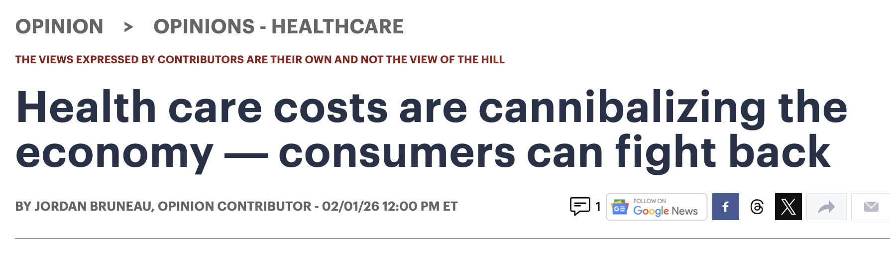The Hill ran GLPI’s op-ed about how healthcare costs are devouring the economy and how consumers can fight back by demanding price transparency. Read the op-ed here.
